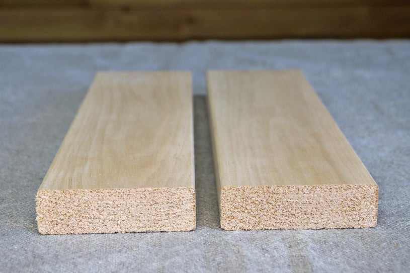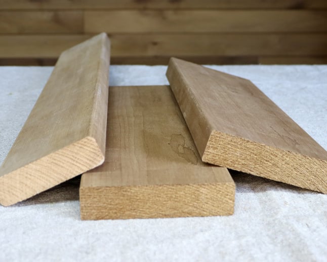 Мы производим полок из ольхи толщиной 27 мм; его ширина может быть нескольких вариантов — 90, 120, 140 мм; длина от 1.0 до 3.2 метра.